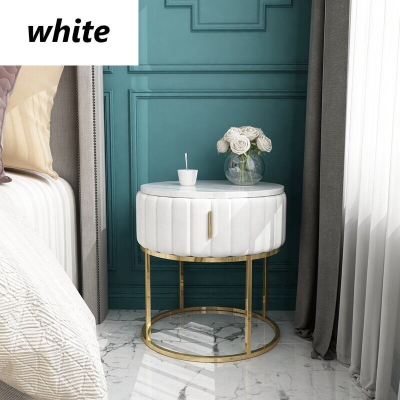 サイドテーブル エレガント コンパクト 大理石調 ラウンド 天板 おしゃれ かわいい インテリア 北欧 収納 ベッドサイド オフィス 白 グレー