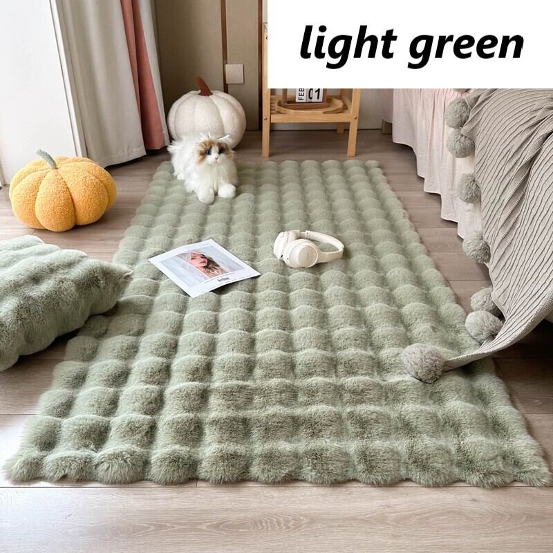 カーペット もこもこ 韓国風 160cm x 60cm おしゃれ かわいい 絨毯 じゅうたん フロア マット ラグ 洗える 四角 白 ピンク グレー グリーン