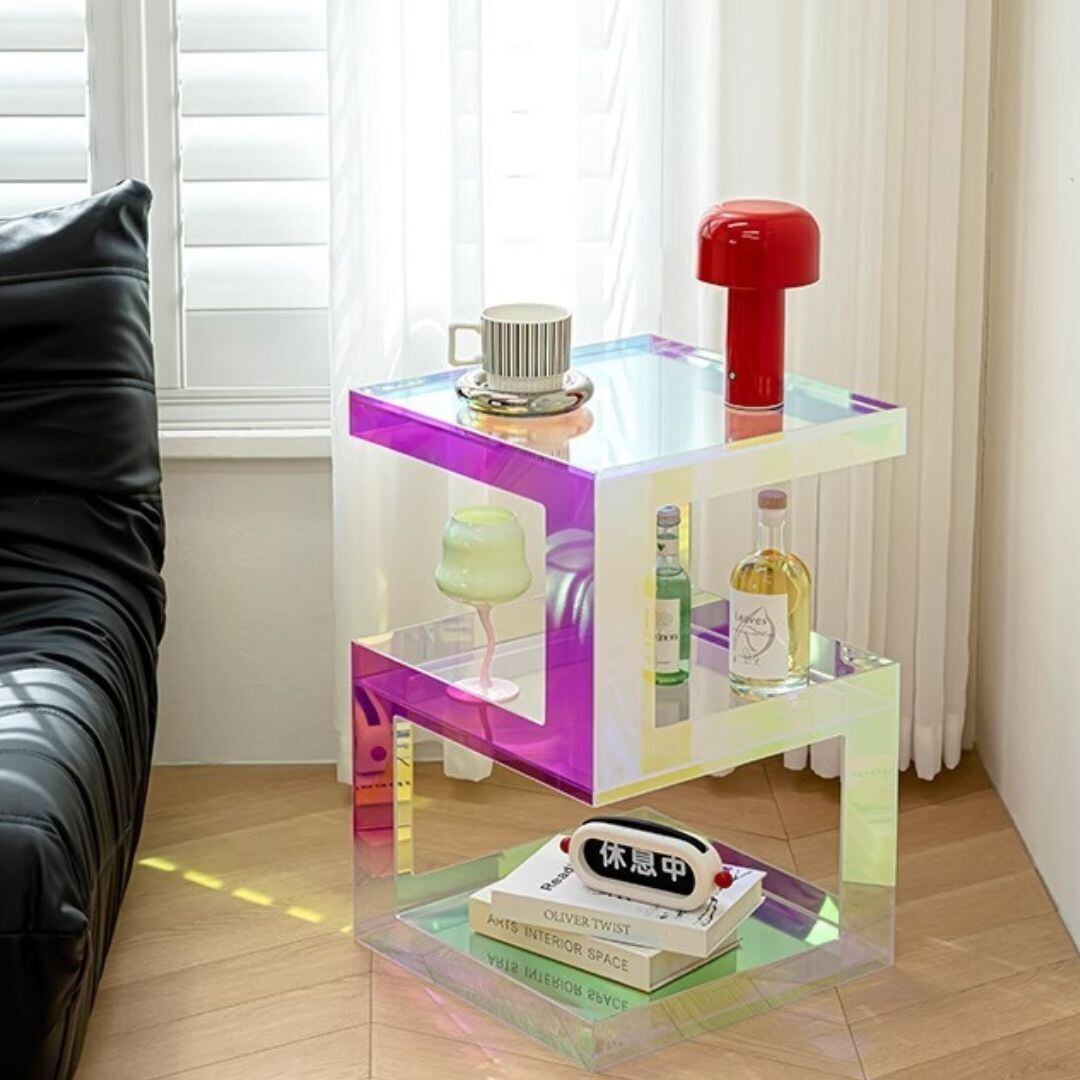 サイドテーブル アクリル オーロラ 透明 クリア レインボー カラフル スクエア かわいい おしゃれ ユニーク 個性的 インテリア 寝室 リビング ソファサイドテーブル エンドテーブル ディスプレイテーブル