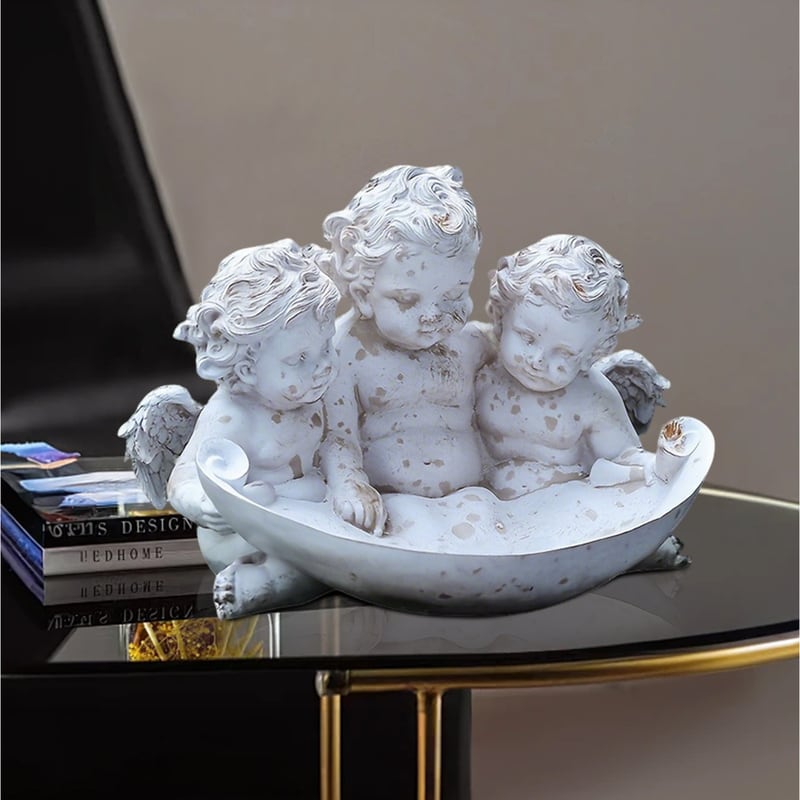 オブジェ 天使 ヴィンテージ調 ヨーロッパ風 おしゃれ かわいい インテリア 北欧 置物 オーナメント 小物入れ レトロ調 アンティーク調 ギフト オフホワイト