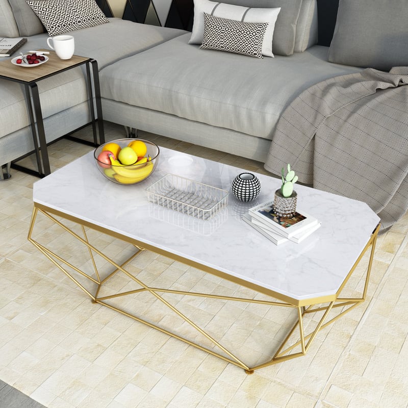 センター テーブル ラグジュアリー 大理石 天板 ラティス フレーム おしゃれ かわいい インテリア 北欧 リビング ダイニング ゴールド