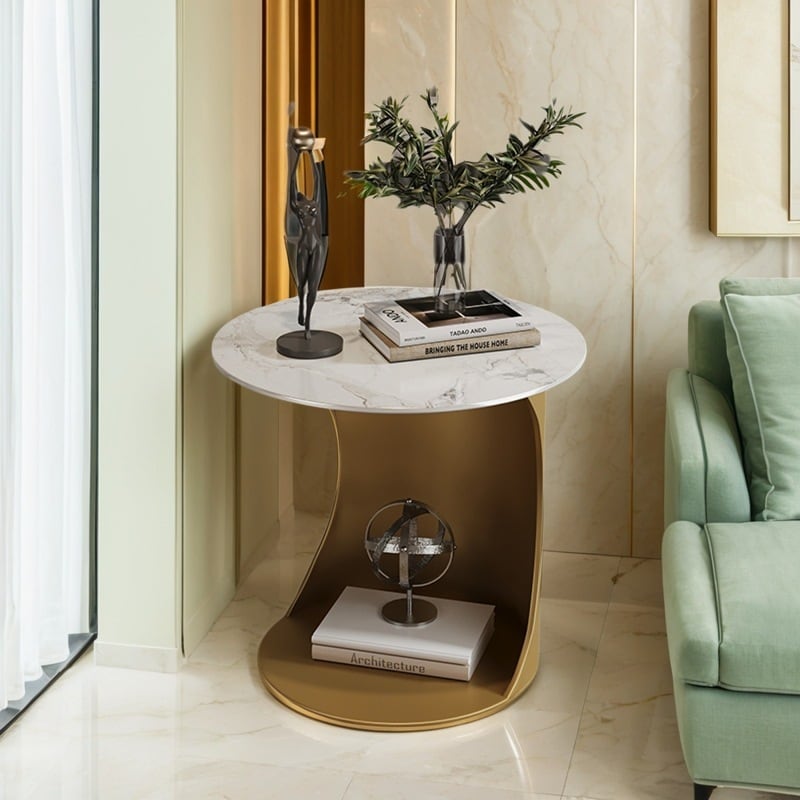 サイドテーブル 円形 ラグジュアリー 大理石調 ゴールド脚 おしゃれ かわいい インテリア 北欧 ラウンド スリム コーヒーテーブル リビング ダイニング