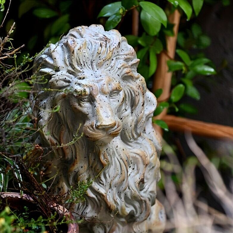 存在感たっぷりのライオンのガーデンオーナメントです。