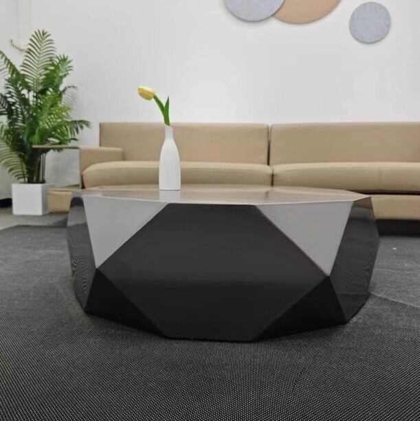 センター テーブル ファセット調 多面体 ラグジュアリー おしゃれ かわいい インテリア ロー 丸 テーブル ステンレス メタリック調 シャープ