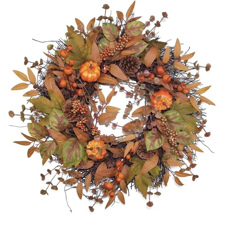 ハロウィン リース かぼちゃ 落ち葉 松ぼっくり 直径 55cm おしゃれ かわいい 北欧 壁掛け インテリア 秋 オータム ドア リース ハロウィーン パーティ イベント 装飾