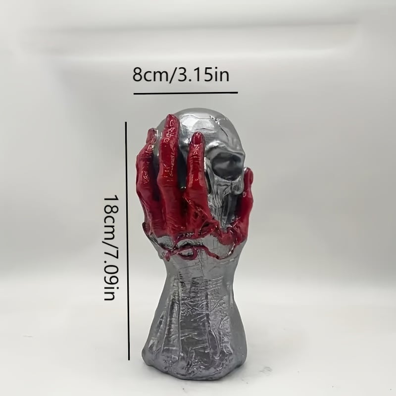 艶やかなシルバースカルをリアルな造形の手が握りしめるデザインが目を引くオブジェです。