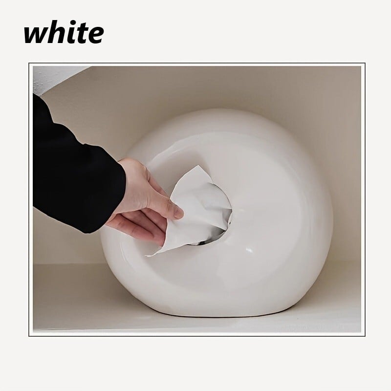 三日月を思わせる開口部と滑らかな曲線美が印象的なティッシュボックスです。