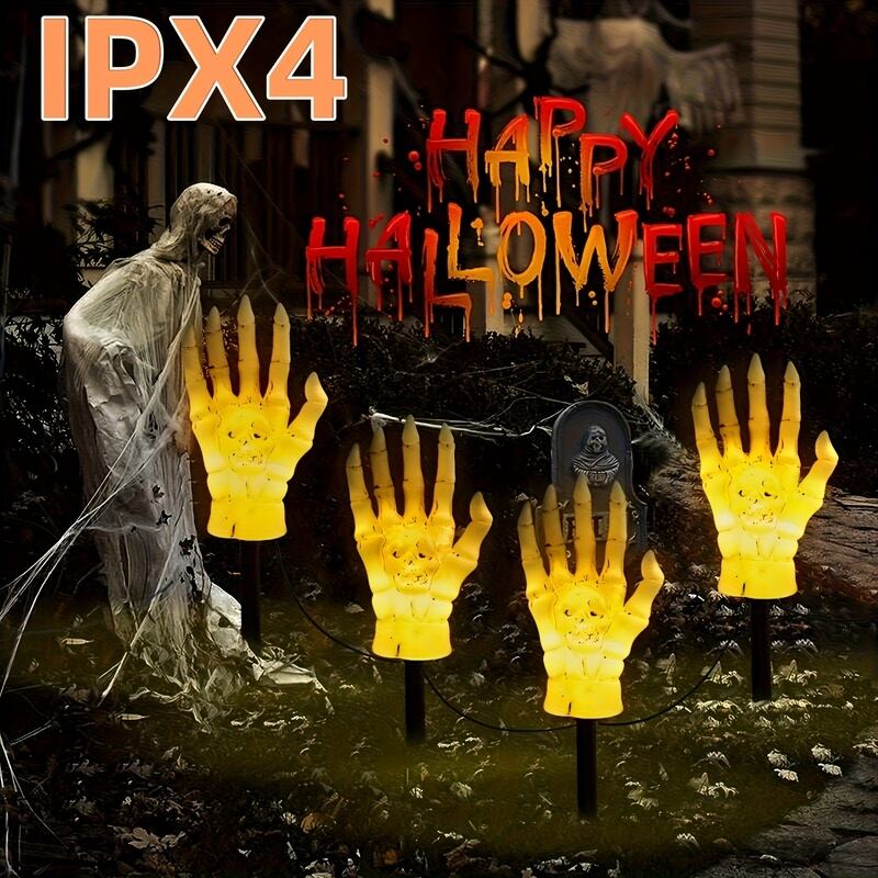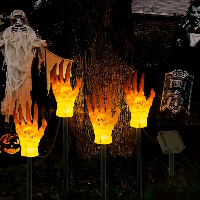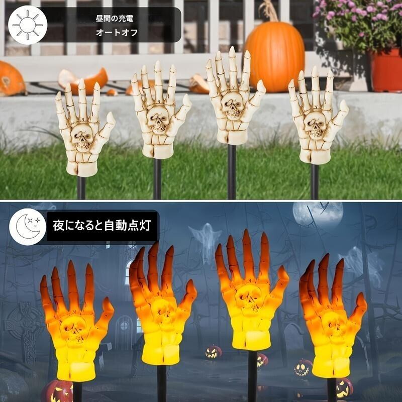 ガーデン ライト 4個セット スケルトン ハロウィン ダーク ガーデン インテリア ソーラー 充電 自動点灯 IPX4 ディスプレイ イベント 装飾 ハロウィーン 雑貨