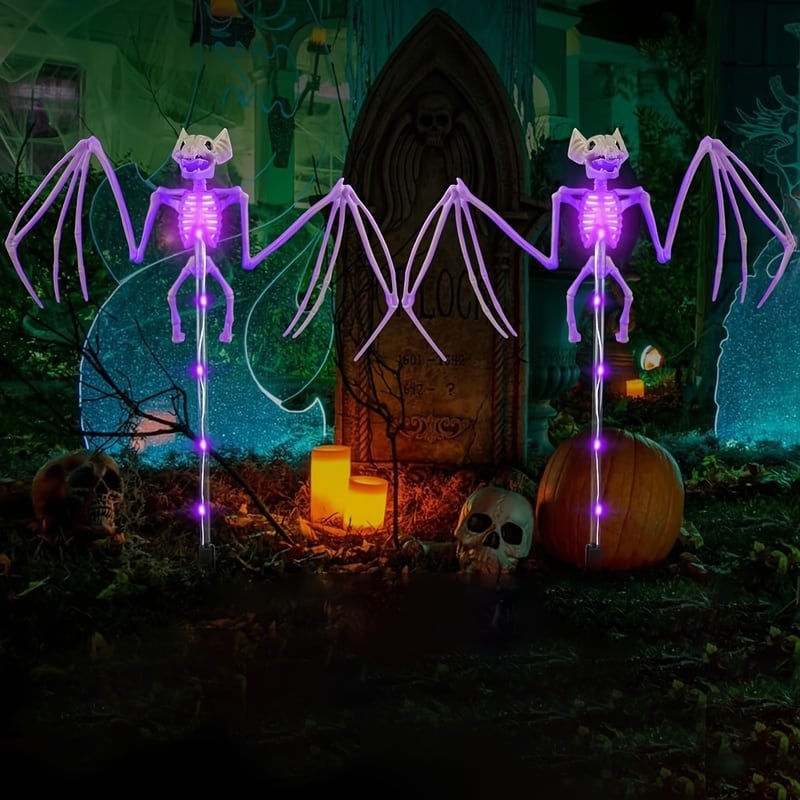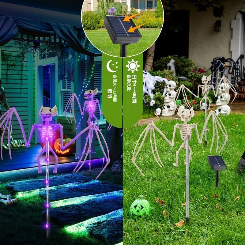 ガーデン ライト 2個セット スカル バット 骸骨 コウモリ ハロウィン インテリア ソーラー 充電 ディスプレイ イベント 装飾 ハロウィーン 雑貨