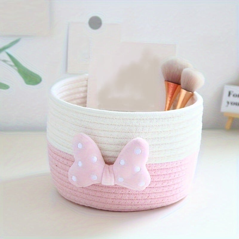 小物入れ 2個セット 多用途 リボン 編み目 おしゃれ かわいい インテリア 韓国風 収納 コスメ アクセサリー 文房具 ギフト プレゼント ピンク
