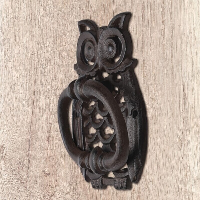 重厚感と遊び心が融合したような鋳鉄製のフクロウ型ドアノッカーです。
