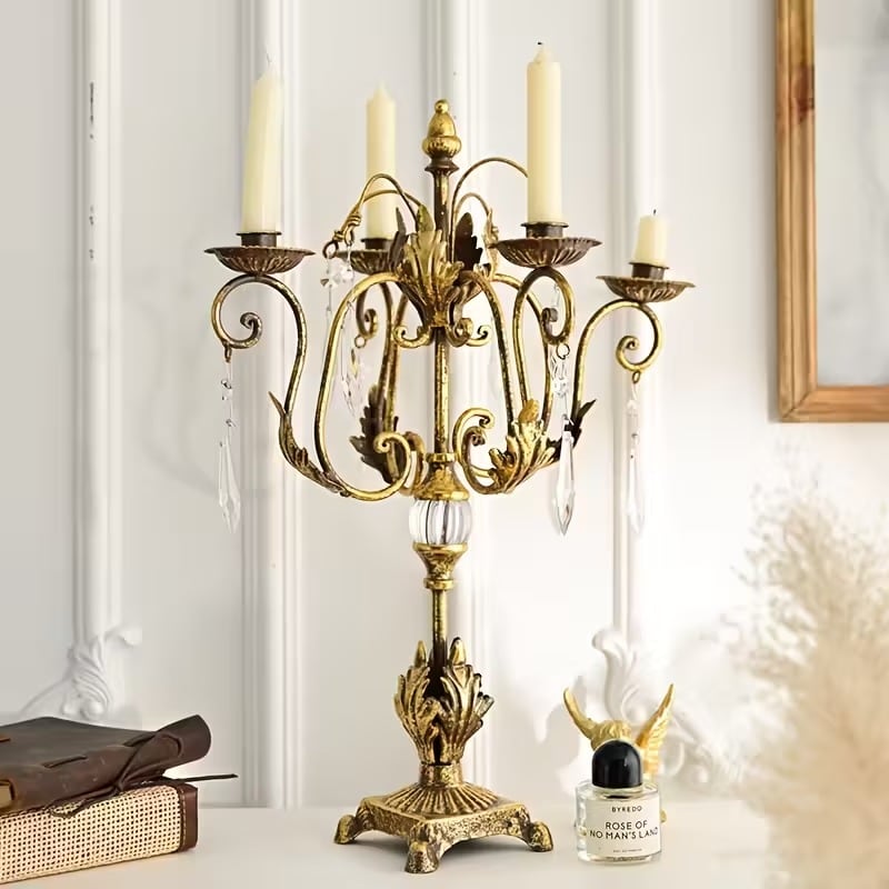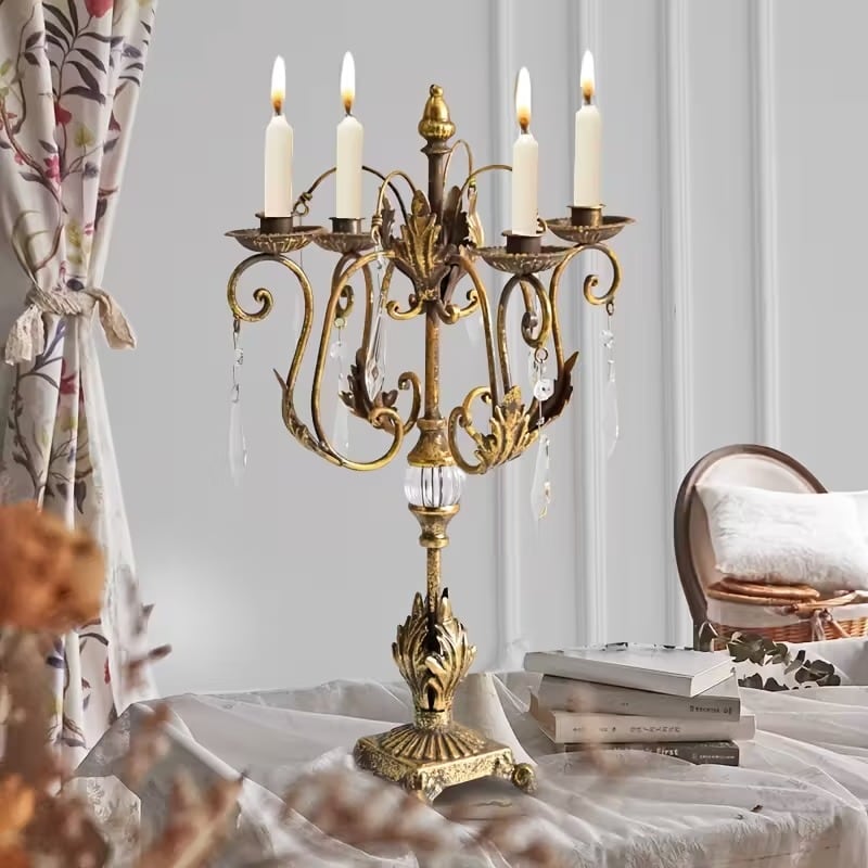 キャンドル ホルダー エレガント 4本腕 ヴィンテージ調 おしゃれ かわいい インテリア 燭台 ロウソク 立て 蠟燭 スタンド ディナー パーティー ウェディング デコレーション 結婚式 ゴールド