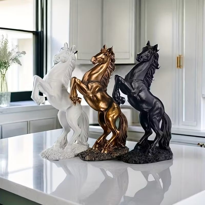 オブジェ 馬 干支 3カラー レジン製 おしゃれ かわいい インテリア 置物 オーナメント 雑貨 室内 アート 白 黒 ブロンズ