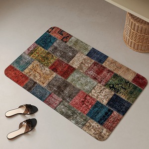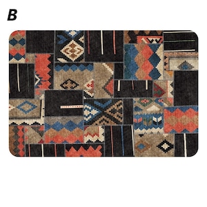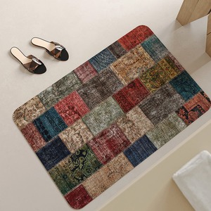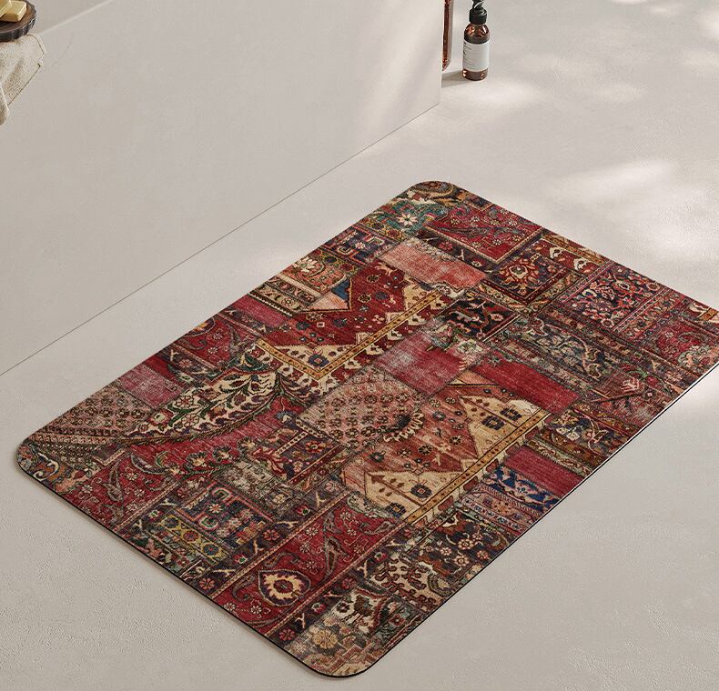 バス マット リーフ柄 幾何学模様 吸水 速乾 60cm × 90cm おしゃれ かわいい インテリア お風呂 足ふき 浴室 絨毯 ラグ モロッコ風 エスニック 民族 ヴィンテージ風 防滑 45cm × 75cm 50cm × 80cm