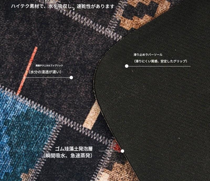 吸水性・速乾性に優れた珪藻土が素材なので、