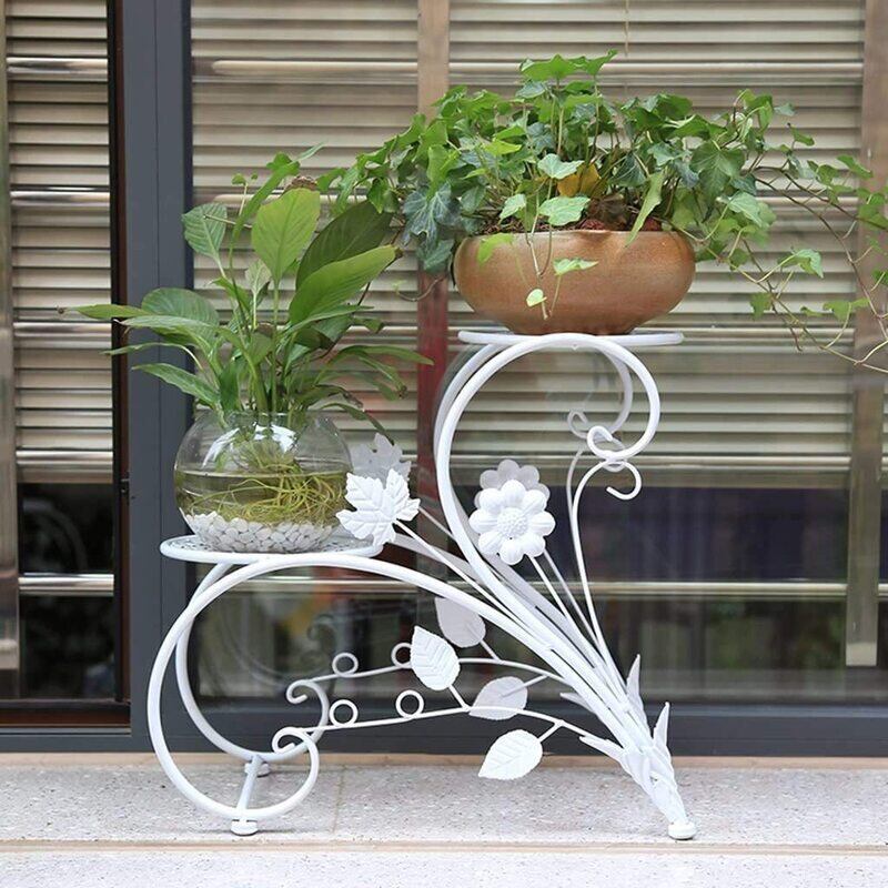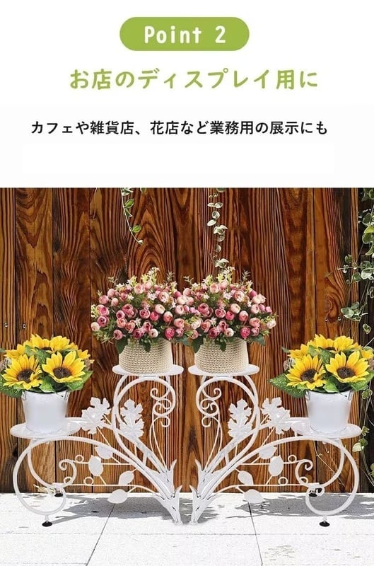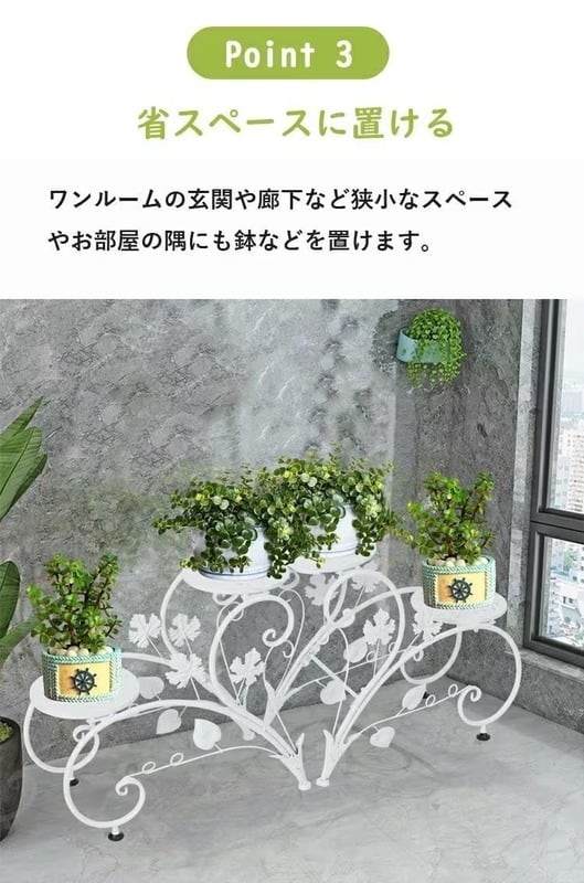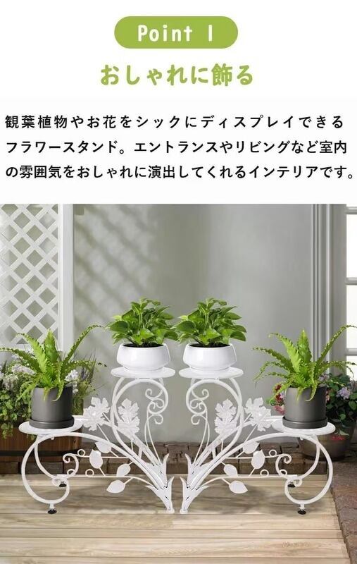 プランター スタンド 花 葉 モチーフ アイアン おしゃれ かわいい インテリア 北欧 ガーデン フラワー ラック ガーデニング 室内 屋外 装飾 白 黒 ゴールド