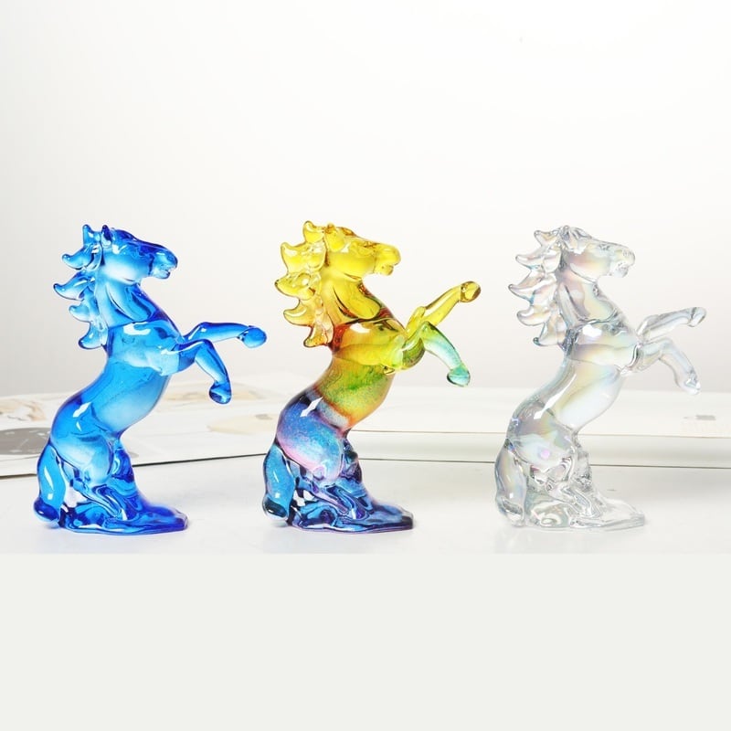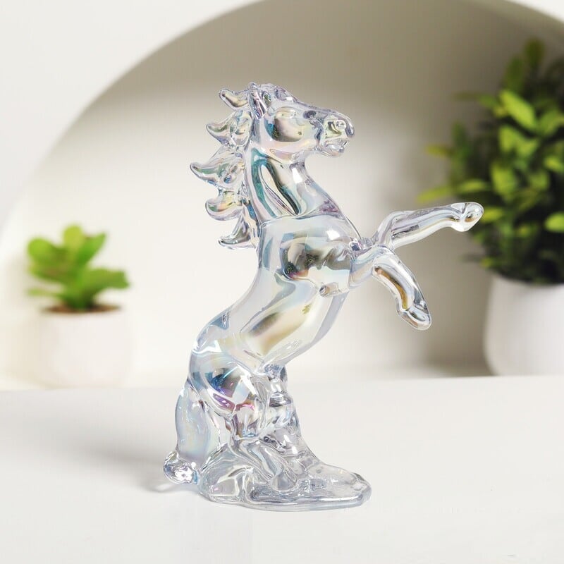 オブジェ 馬 干支 ホワイトクリスタル 跳ね馬 おしゃれ かわいい インテリア うま ウマ 置物 オーナメント 雑貨 ディスプレイ 装飾 水晶 贈り物 ギフト クリア グレー イエロー