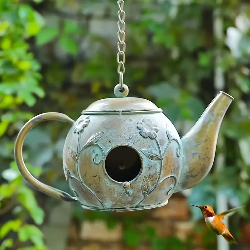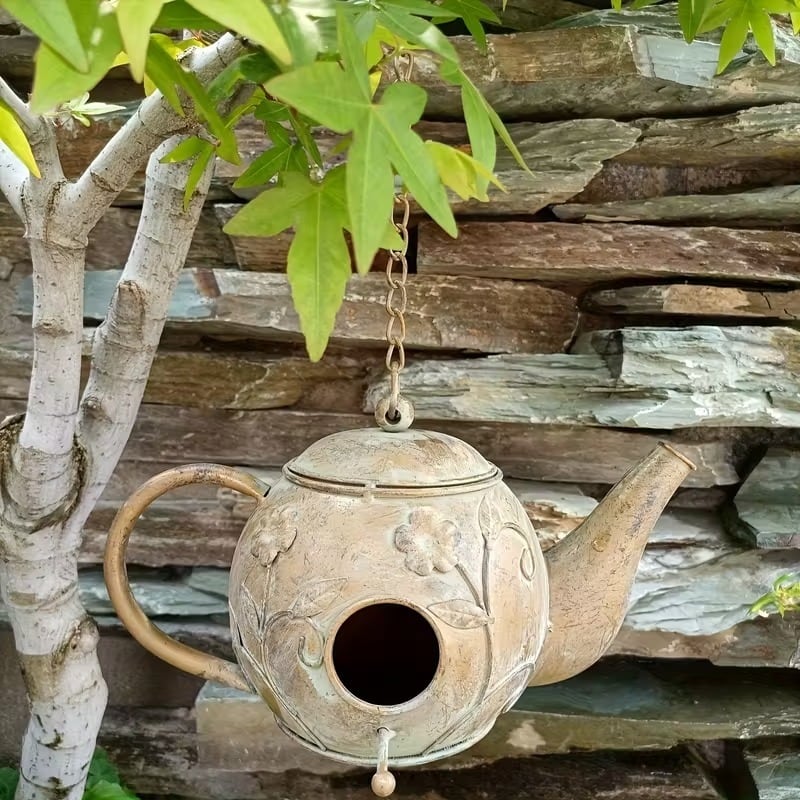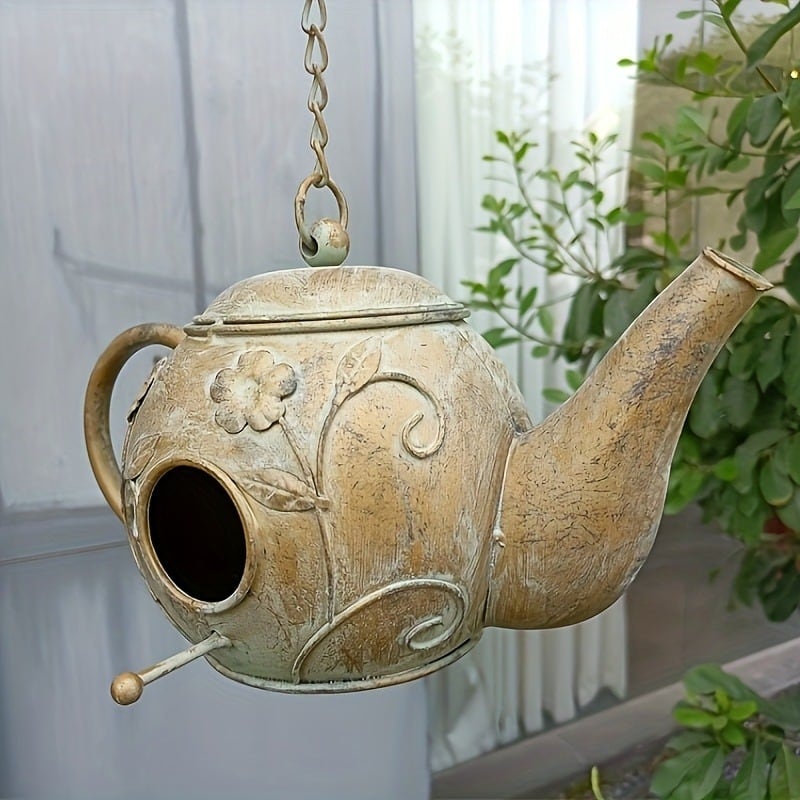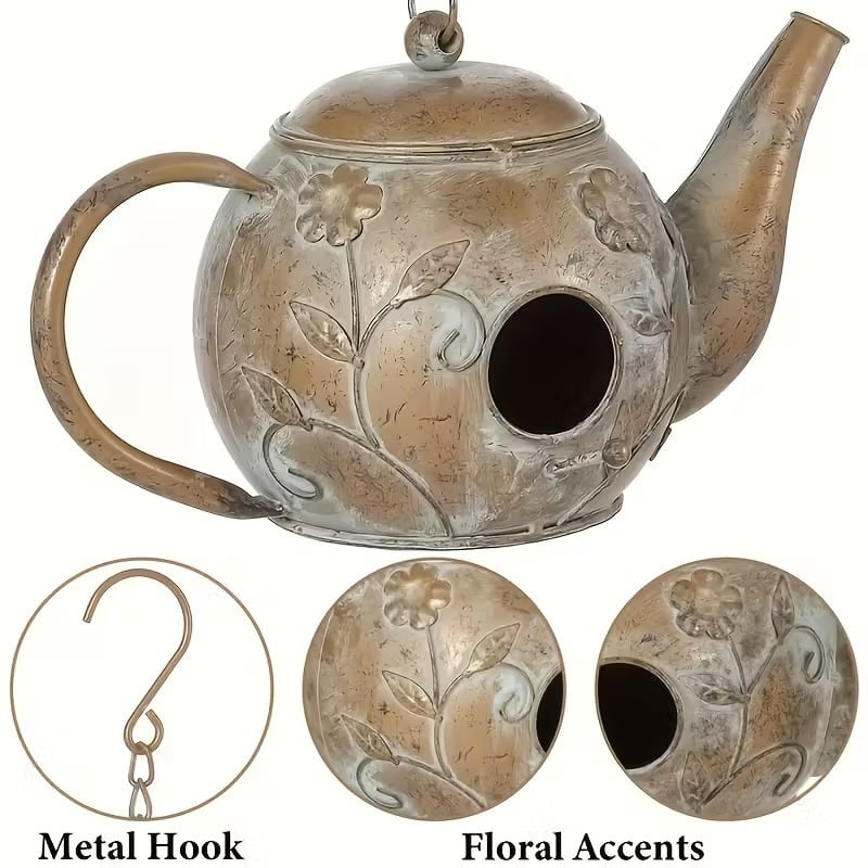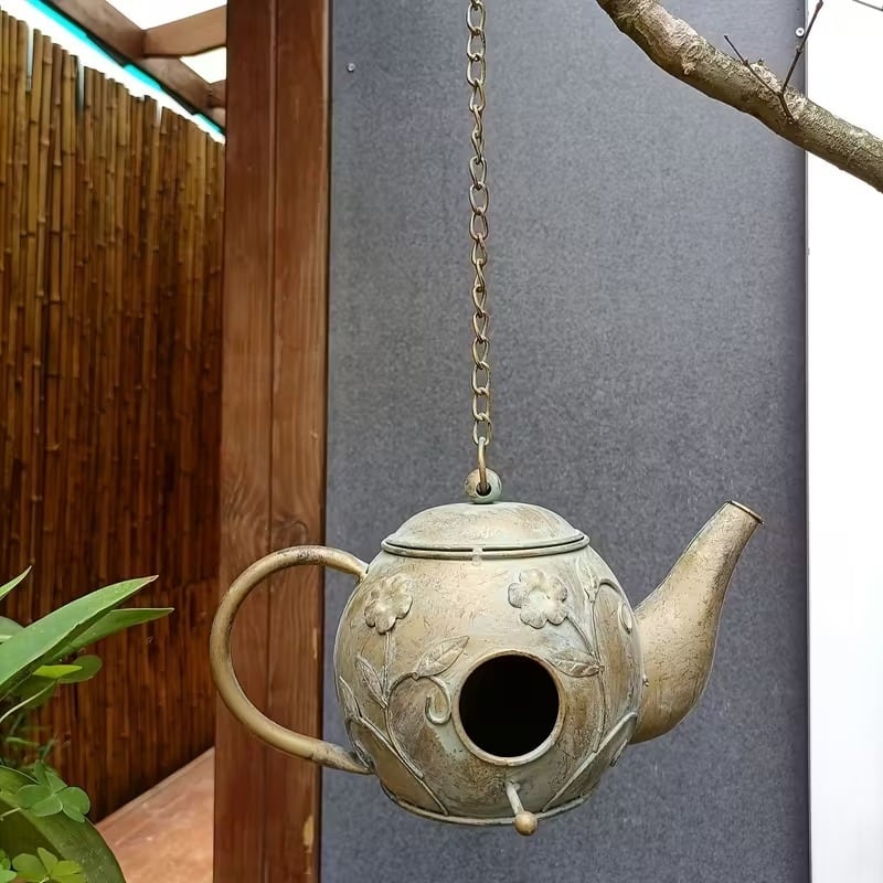 バード フィーダー ティーポット型 ヴィンテージ調 吊り下げ おしゃれ かわいい ガーデン オブジェ アンティーク調 ハウス 鳥 給餌器 野鳥 小鳥 鳥用品 屋外 庭