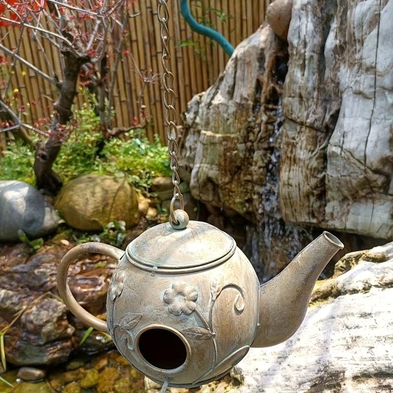 詩的でノスタルジックな佇まいが特徴のティーポット型バードフィーダーです。