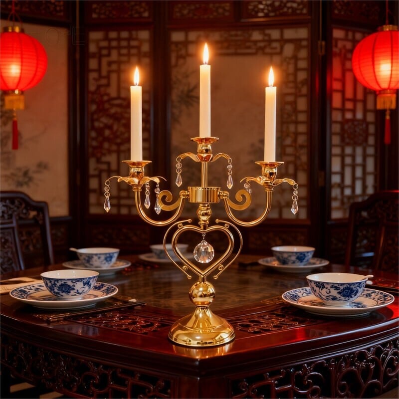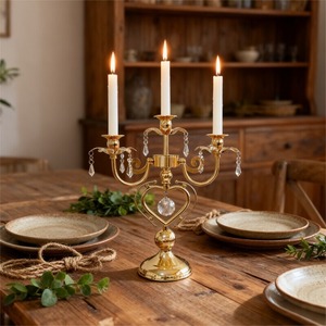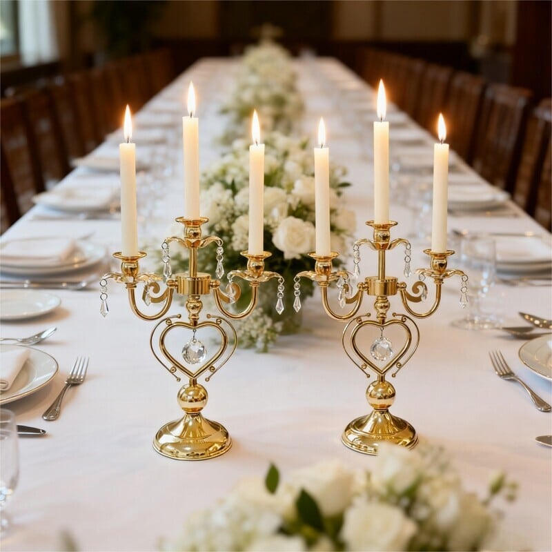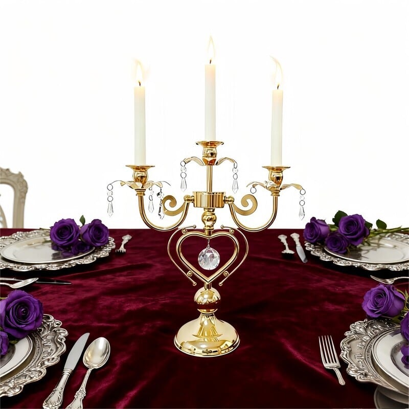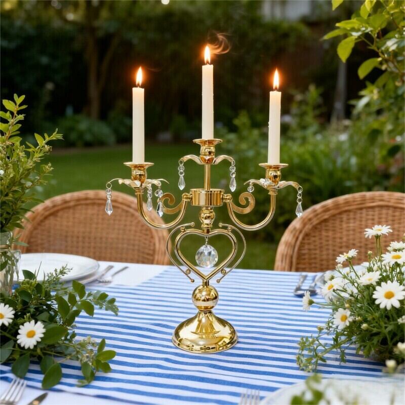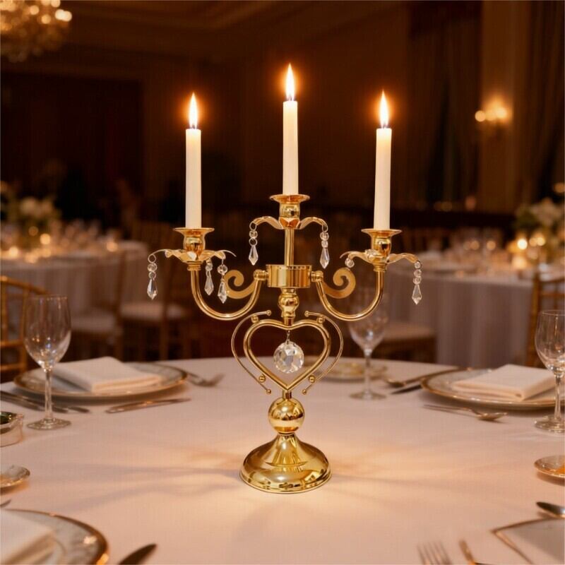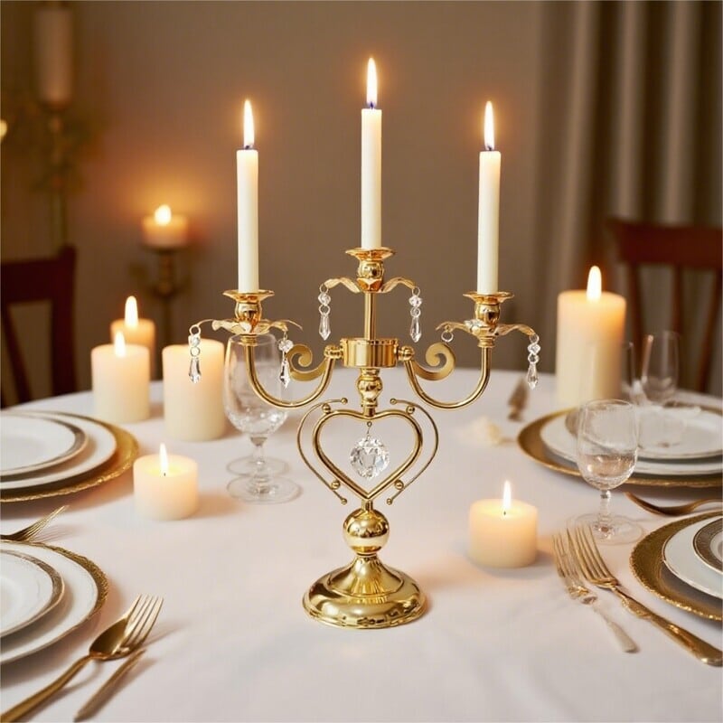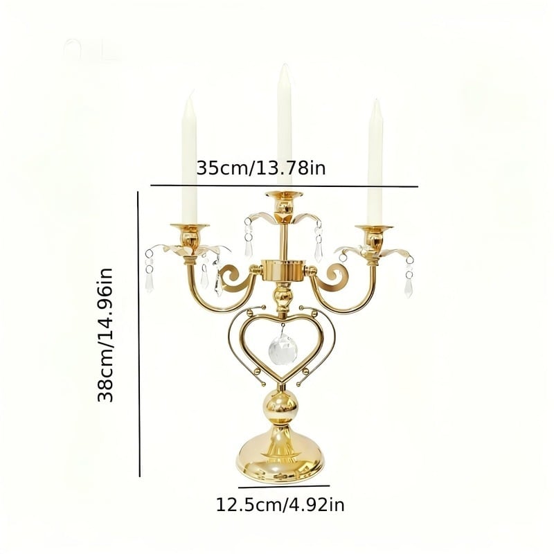 キャンドル ホルダー ハート型 フレーム 3本腕 ゴールド カラー おしゃれ かわいい インテリア 燭台 ロウソク 立て 蠟燭 スタンド クラシック ロマンティック ディナー パーティー ウェディング デコレーション 装飾 結婚式