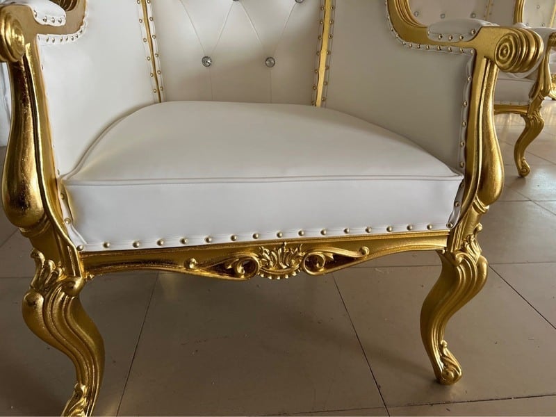 チェア ラグジュアリー ロイヤル 玉座 ホワイト おしゃれ インテリア 北欧 ゴールド カラー 装飾 椅子 いす アーム チェア ホテル リゾート ヴィラ ラウンジ