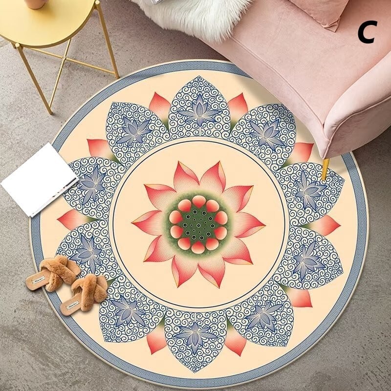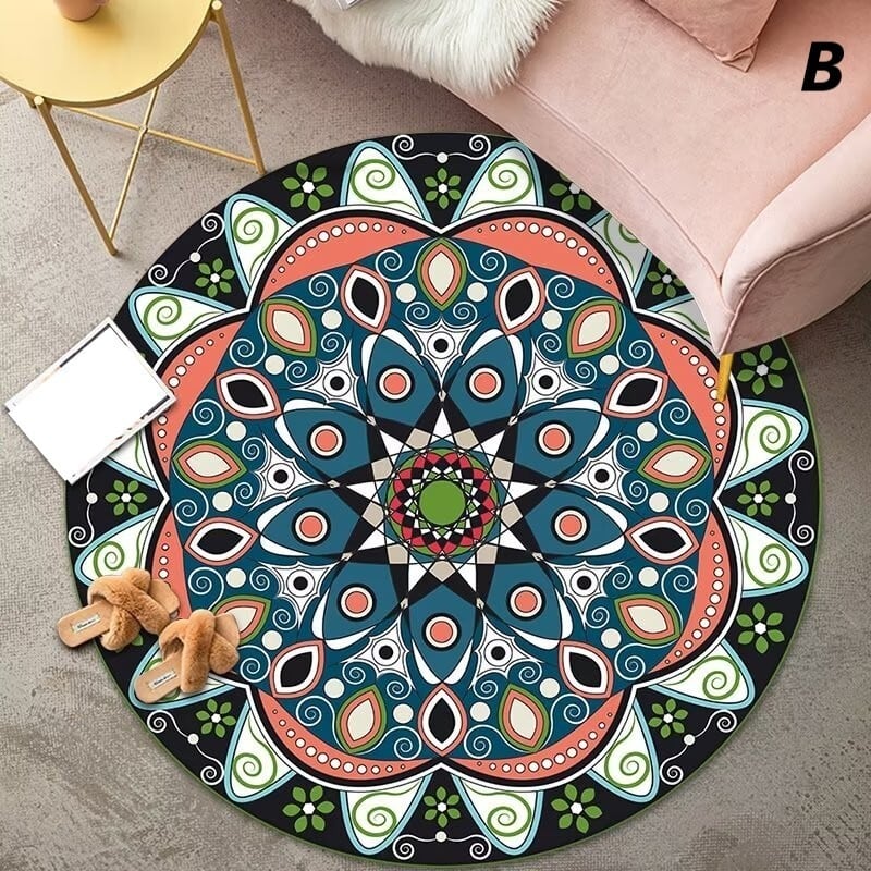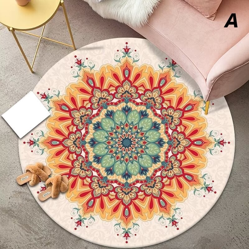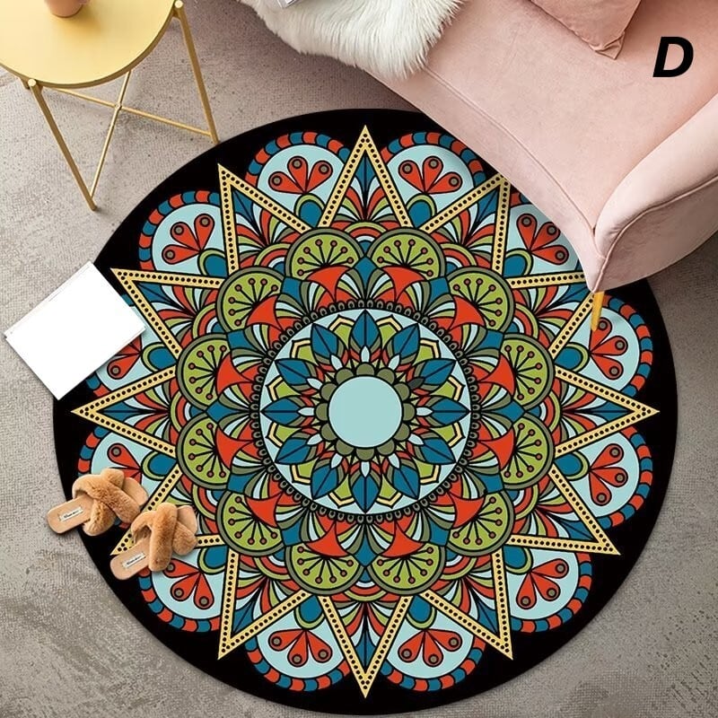 カーペット ラウンド 円形 曼荼羅 クリスタルベルベット調 おしゃれ エスニック インテリア 直径 100cm 120cm 滑り止め 絨毯 ラグ ヨガ マット 北欧 洗える