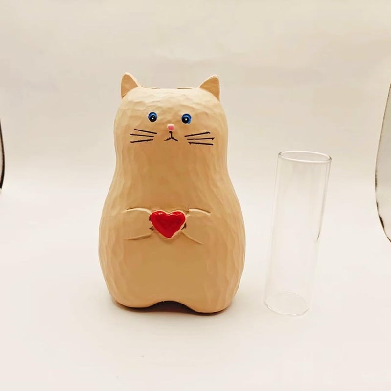 花瓶 猫 ユニーク 癒し系 ハート おしゃれ かわいい インテリア フラワー ベース 花びん 観葉植物 一輪挿し ナチュラル