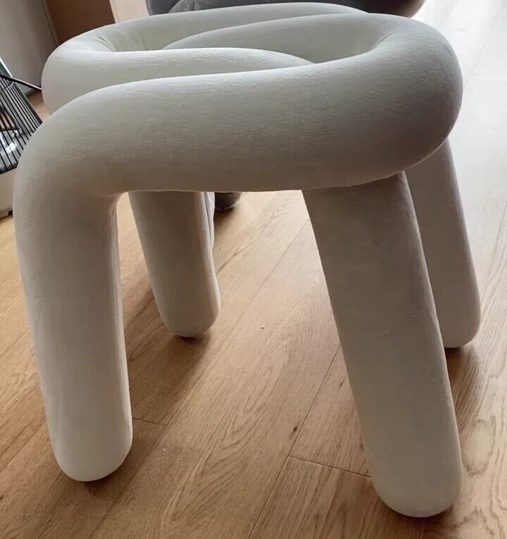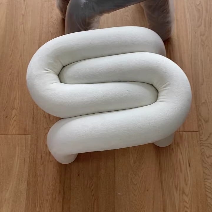 チューブ状のパーツがループしながら構成されていて、見た目のインパクトが抜群のスツールです。