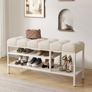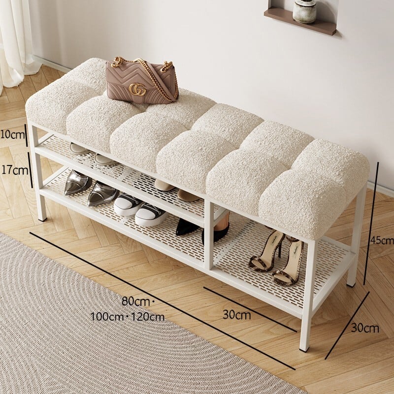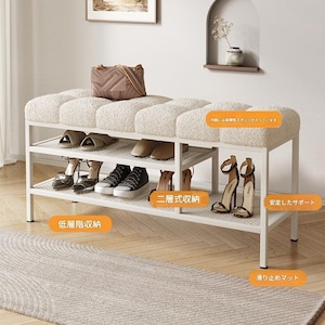 スツール 収納 付き モコモコ もこもこ 韓国風 おしゃれ かわいい インテリア 北欧 ベンチ チェア 椅子 いす イス シューズ ラック 屋内 白 ホワイト