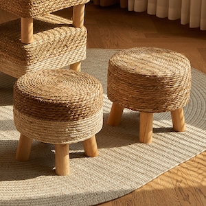 手編みの温もりを感じるスツールです。