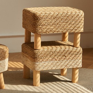 スツール スクエア型 ナチュラル ラタン 手編み おしゃれ かわいい インテリア 北欧 長方形 コンパクト チェア 椅子 いす イス
