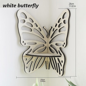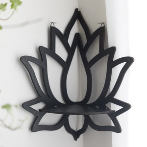 コーナー シェルフ 蝶 蓮 線画風 木製 おしゃれ かわいい 壁掛け インテリア エレガント モダン バタフライ ロータス オープン ラック 収納 棚 ダイニング キッチン ディスプレイ ホワイト ブラック