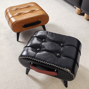 スツール コンパクト ボタンタフティング ハンドル 付き おしゃれ かわいい インテリア 北欧 オットマン チェア 椅子 いす イス 黒 ブラック ブルー