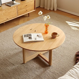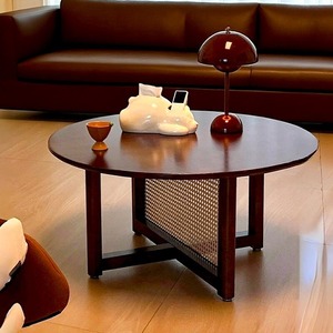ロー テーブル ナチュラル 木目 ラウンド 円形 おしゃれ かわいい インテリア センター テーブル 藤編み 木製 SNS映え フォトジェニック リビング ダイニング