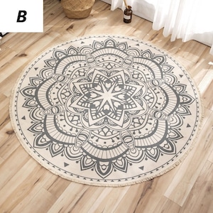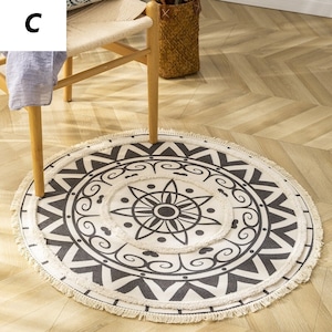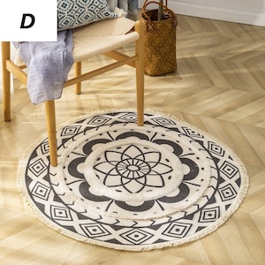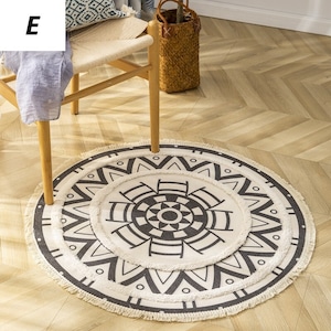 カーペット 円形 モノトーン シンメトリー マンダラ風 デザイン おしゃれ エスニック インテリア 直径 90cm 150cm 絨毯 ラウンド ラグ 幾何学模様 ヨガ マット 洗える