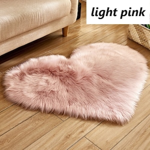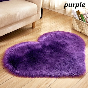 ラグ ハート フェイク ファー ふわふわ 小さめ 90cm x 70cm おしゃれ かわいい インテリア カーペット 絨毯 じゅうたん マット ソファ ベッドサイド 白 ピンク 黒 ブラウン レッド グレー パープル ブルー