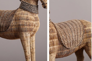 ラタンと樹脂で編まれた馬モチーフのオブジェで、