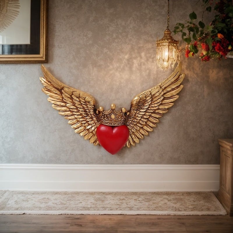 樹脂素材ならではの軽やかさと立体感のある造形が魅力的。神聖さ・愛・自由・高貴さといったシンボルが融合したデザインで、リビングや玄関、寝室のアクセントとして飾れば、空間にドラマチックな雰囲気をプラスしてくれるでしょう。