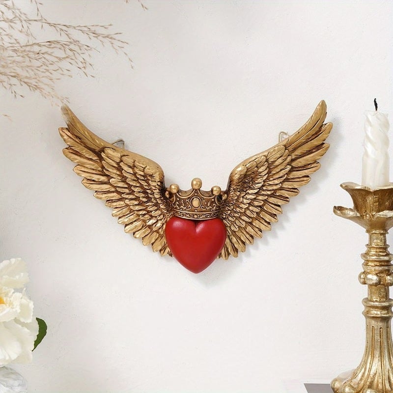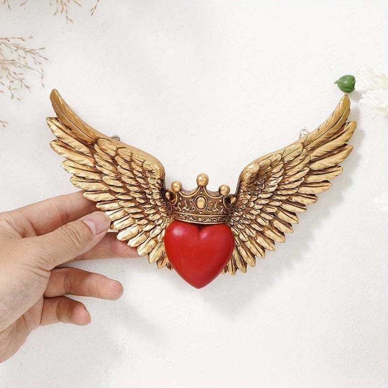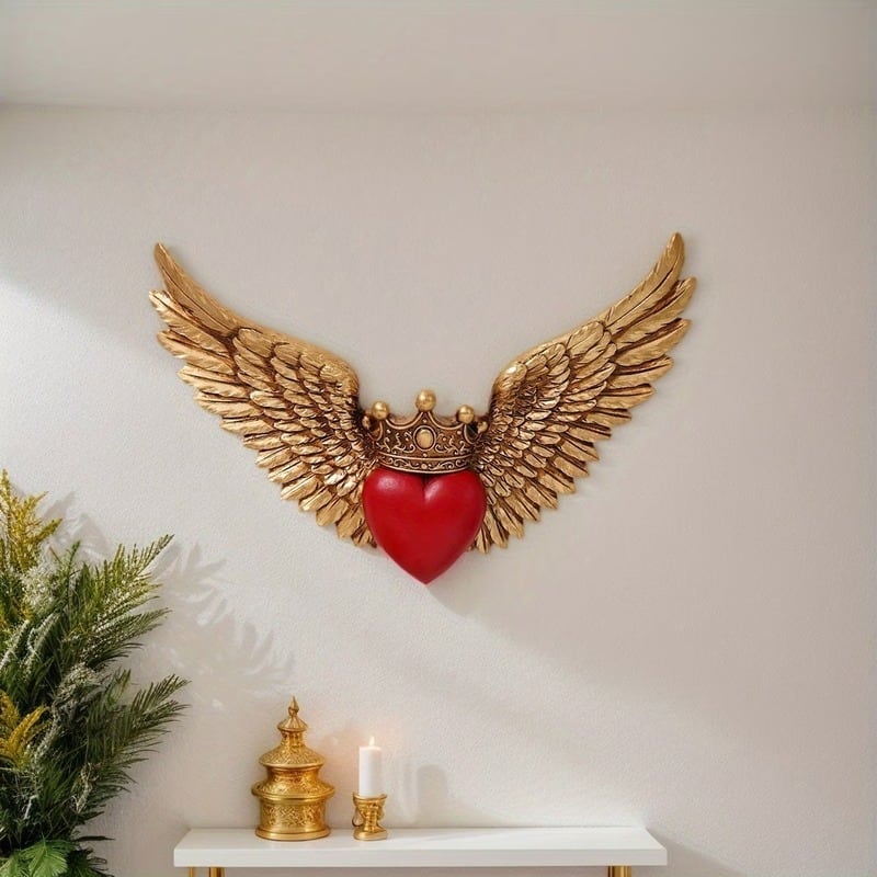 ウォール アート ハート エンジェリック おしゃれ かわいい 壁掛け インテリア オブジェ 置物 王冠 クラウン 翼 パーティー イベント 装飾 デコレーション