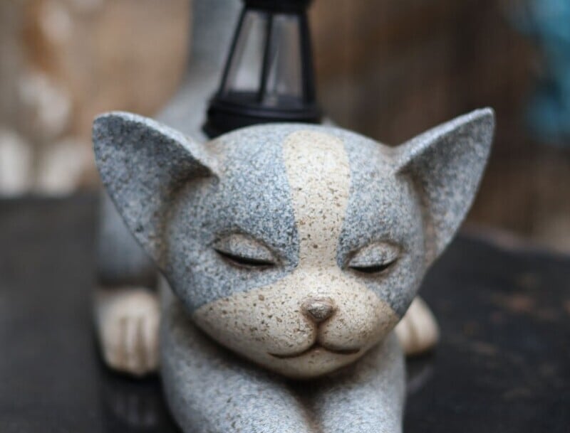 樹脂製の猫モチーフオブジェに太陽電池パネルを搭載したガーデンライトです。