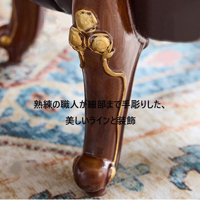 脚部の手彫りとゴールドカラー装飾が存在感を放ち、