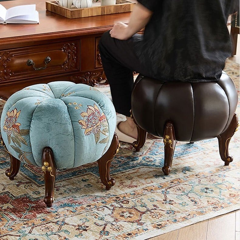 スツール かぼちゃ型 アンティーク調 おしゃれ かわいい インテリア 北欧 オットマン パンプキン チェア 椅子 いす イス カボチャ型 レトロ調 オレンジ ブルー ブラウン グリーン
