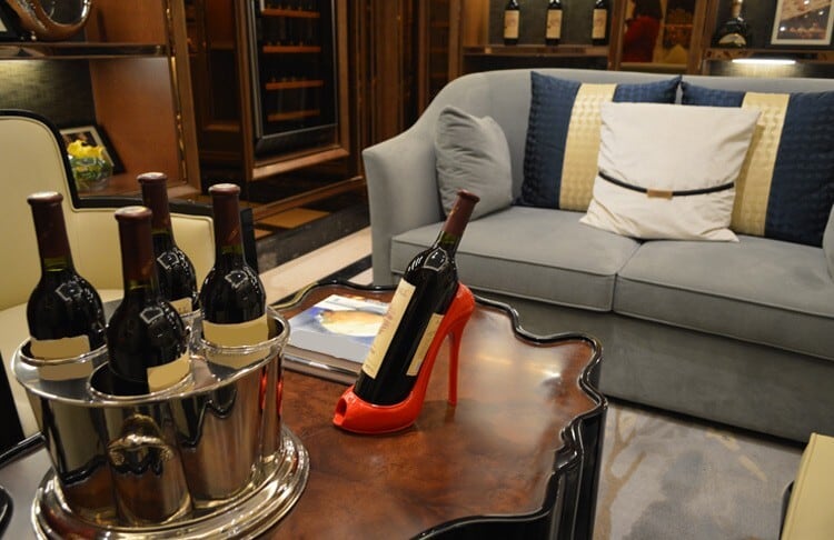ファッション×ワインというユニークな組み合わせが目を引くラックです。