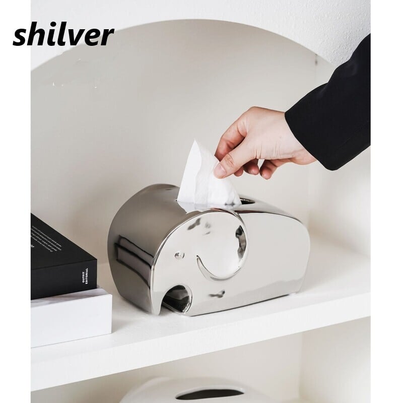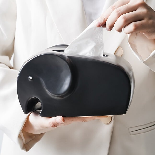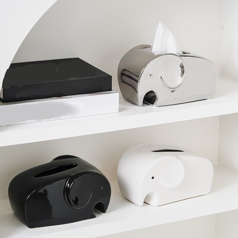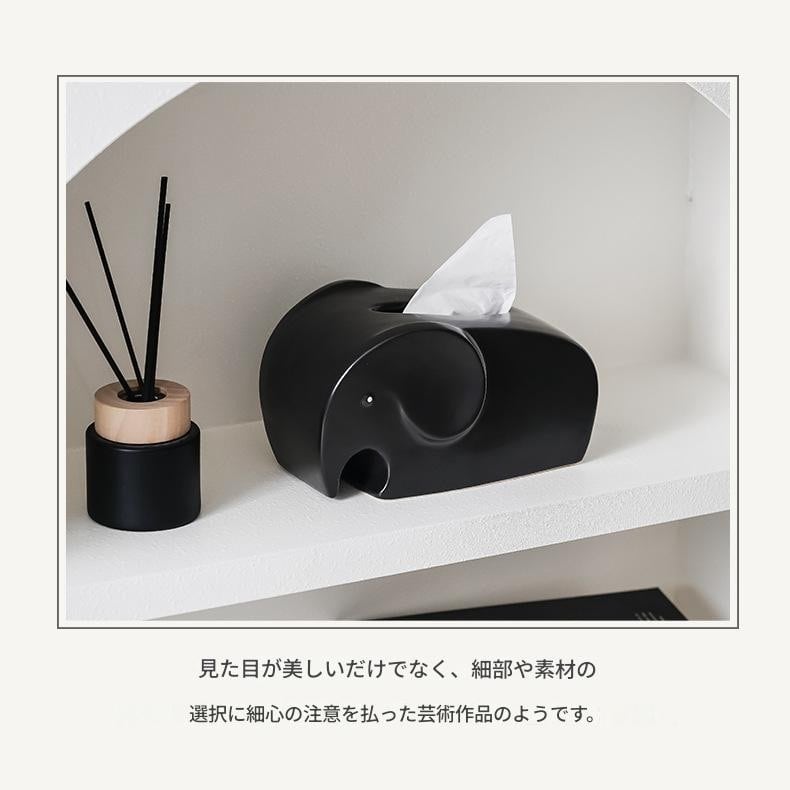 ティッシュ ボックス 象 ゾウ おしゃれ かわいい インテリア ティッシュ ケース カバー モダン ホテルライク ミニマル 動物 アニマル リビング オフィス デスク ギフト プレゼント 白 ホワイト 黒 ブラック シルバー