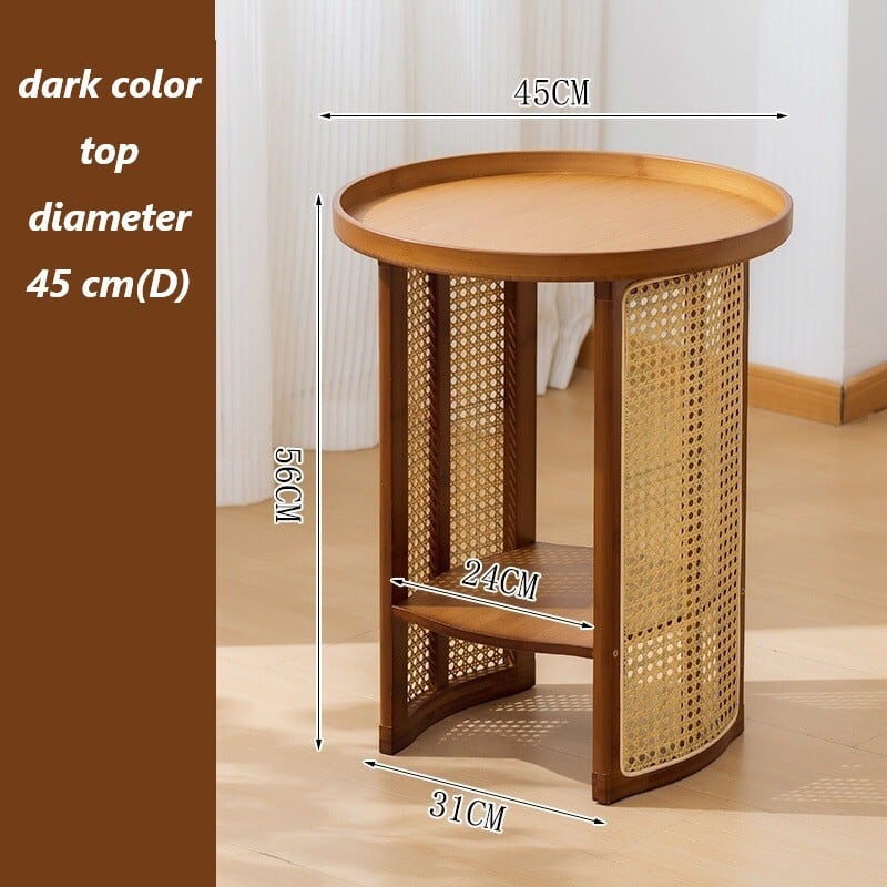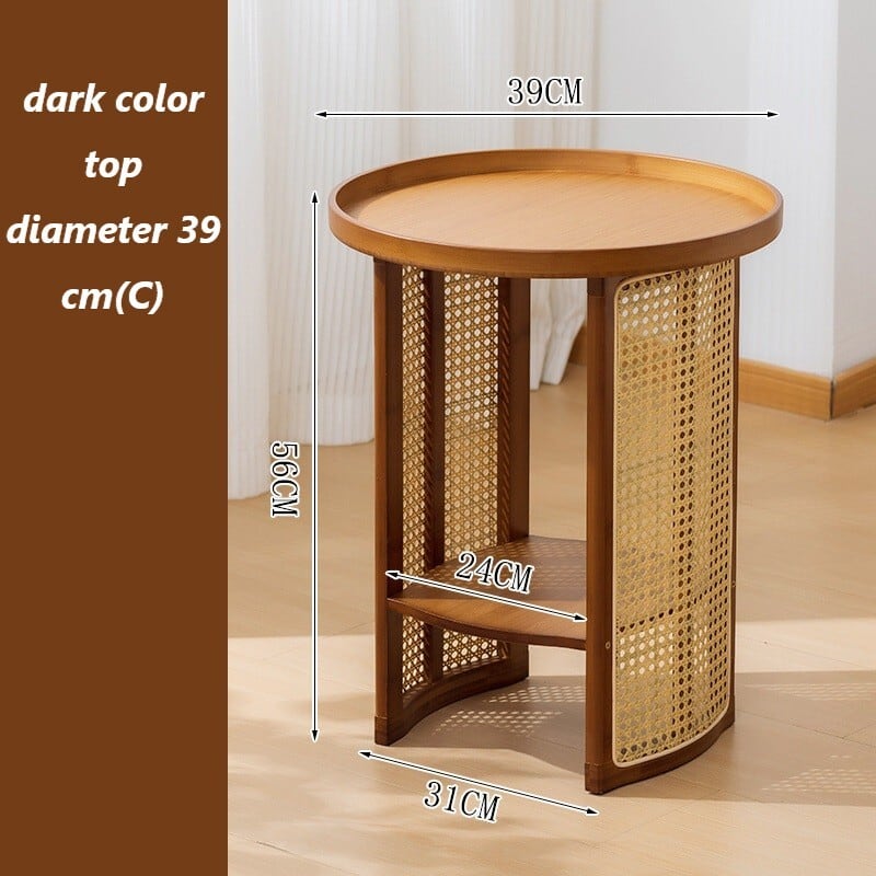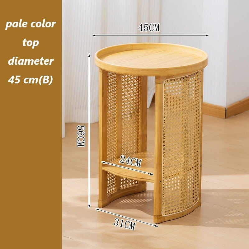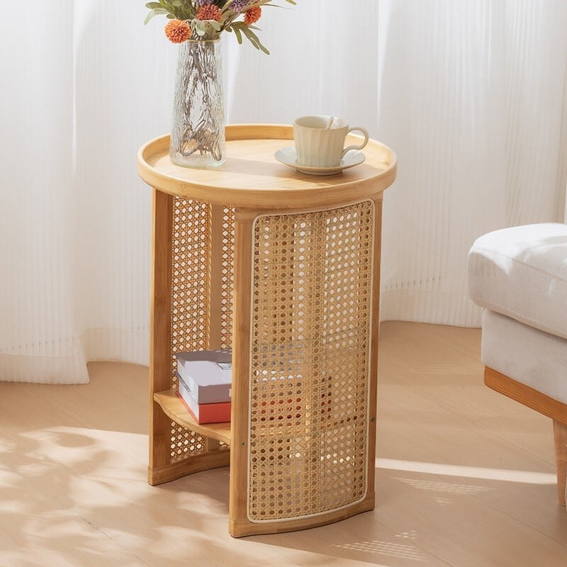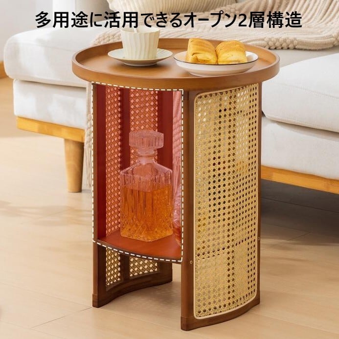 竹素材と樹脂製ラタンを組み合わせた円形サイドテーブルです。