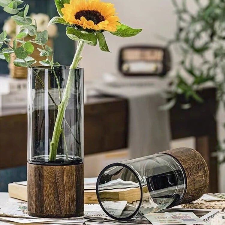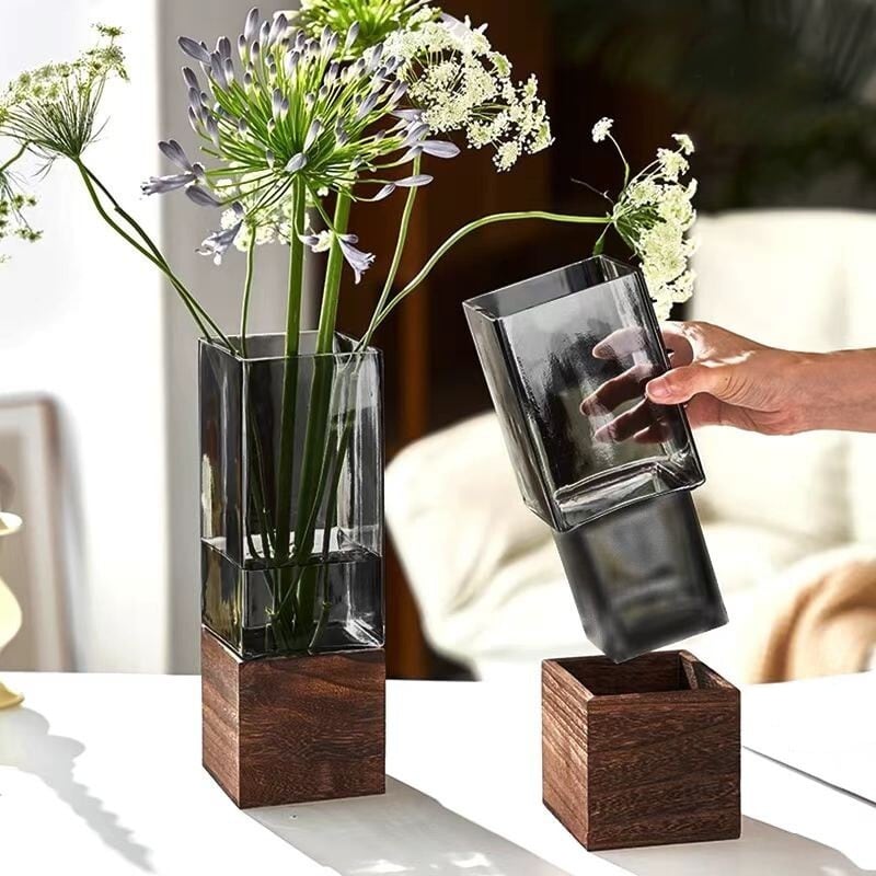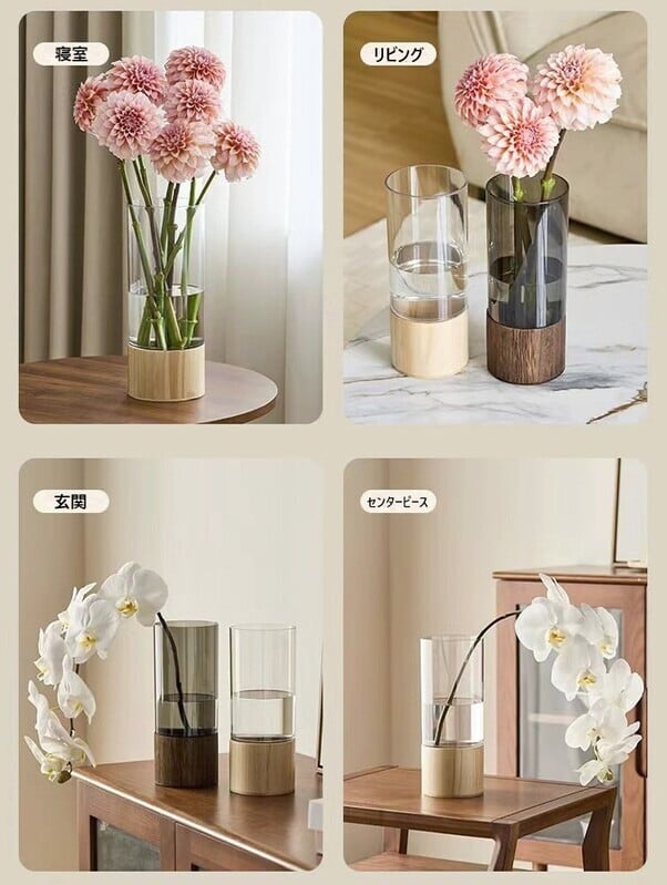 花瓶 ナチュラル ラグジュアリー スクエア型 シリンダー型 台座 セパレート おしゃれ かわいい インテリア フラワー ベース 卓上 花びん 置物 オブジェ 観葉植物 一輪挿し リビング 玄関 贈り物 プレゼント