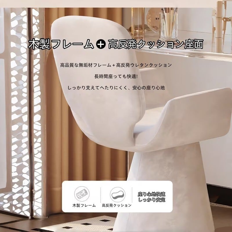 スツール 360°回転 快適 曲線 フォルム おしゃれ かわいい インテリア 北欧 メイク チェア ドレッサー 椅子 いす イス ホテルライク 白 ホワイト