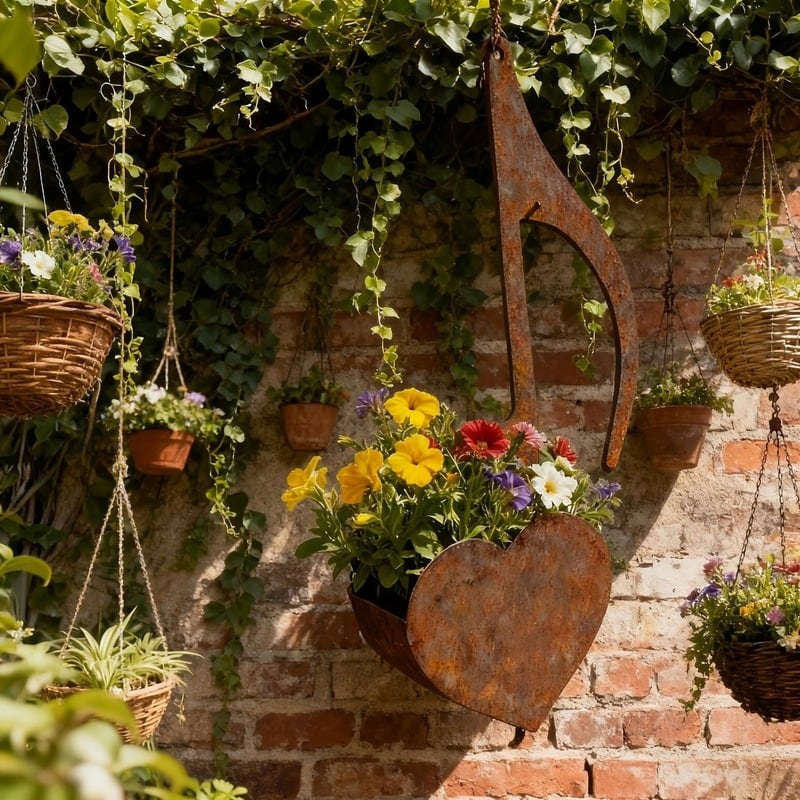 プランター 壁掛け ハート 音符 ヴィンテージ感 おしゃれ かわいい インテリア 北欧 レトロ調 アンティーク調 鉢 植木鉢 ガーデン ウォール フラワー ラック ガーデニング 室内 屋外 装飾