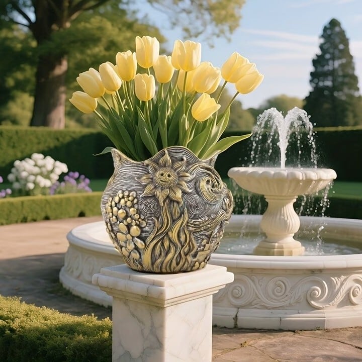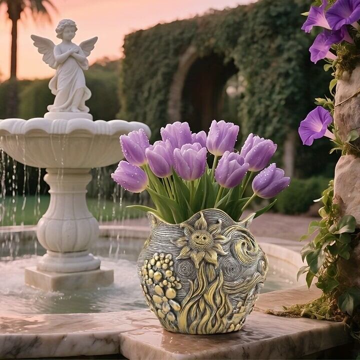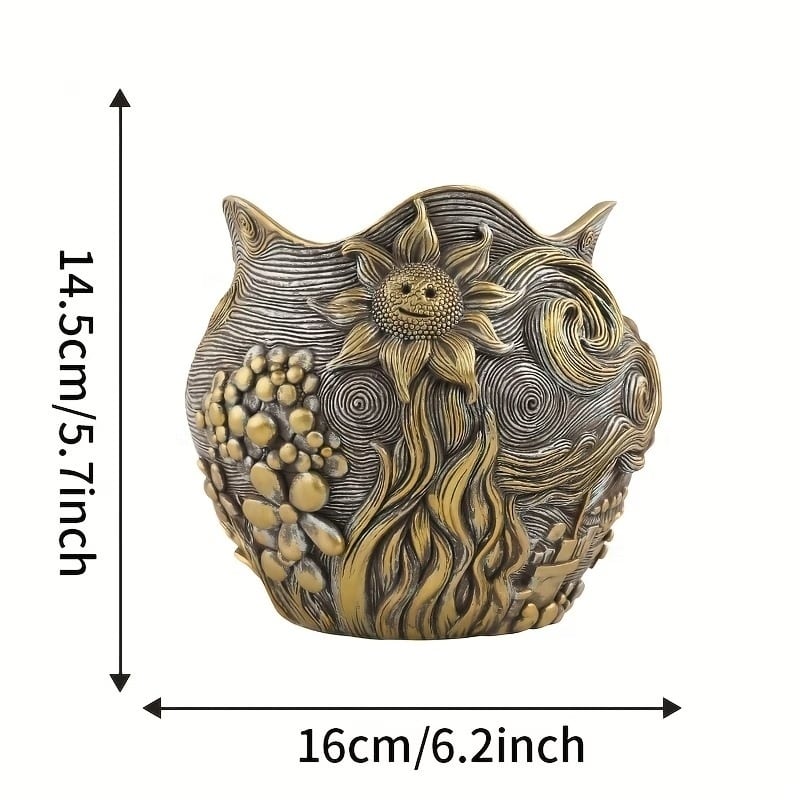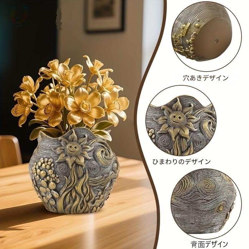 花瓶 太陽 ひまわり アート アールヌーボー アンティーク調 おしゃれ かわいい インテリア フラワー ベース 卓上 装飾 花びん ヴィンテージ調 レトロ調 観葉植物 一輪挿し サロン ホテル 贈り物 プレゼント