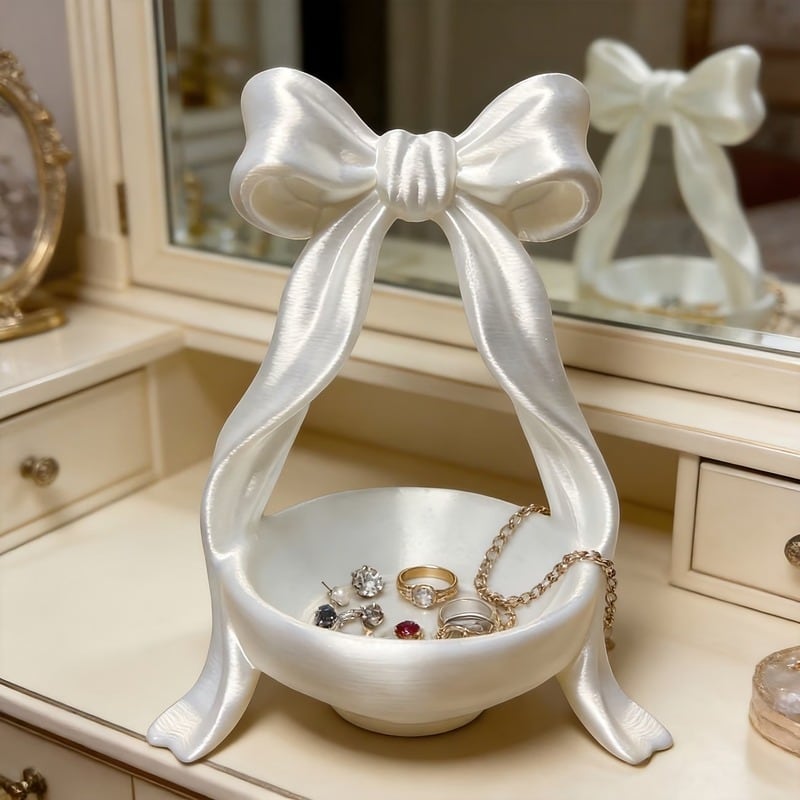 アクセサリー トレイ リボン 光沢 おしゃれ かわいい 収納 インテリア 多用途 マルチ 小物入れ ジュエリー ケース オーガナイザー ギフト プレゼント ドレッサー 白 ホワイト